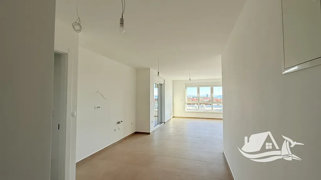 V oblíbeném přímořském městě Vodice nabízíme právě dokončený apartmán, který je poslední volnou jednotkou v moderním domě se sedmi byty. Nachází se ve 2. patře a nabízí otevřený panoramatický výhled na moře, klidné prostředí a zároveň výbornou dostupnost do centra i na pláž. Centrum města je vzdálené přibližně 1000 metrů a pláž 1400 metrů.