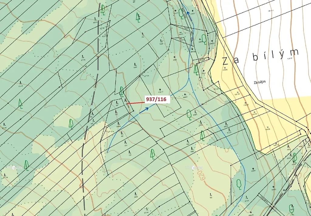 Lesní pozemek o výměře 295 m2, parcelní číslo 937/116, podíl 1/1, katastrální území Netřebice, obec Netřebice, obec s rozšířenou působností Kaplice, okres Český Krumlov, Jihočeský kraj.