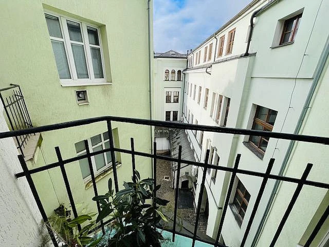 ve 4. nadzemním podlaží cihlového domu přímo v centru Liberce, jen 100 m od liberecké radnice a v klidné pěší zóně.