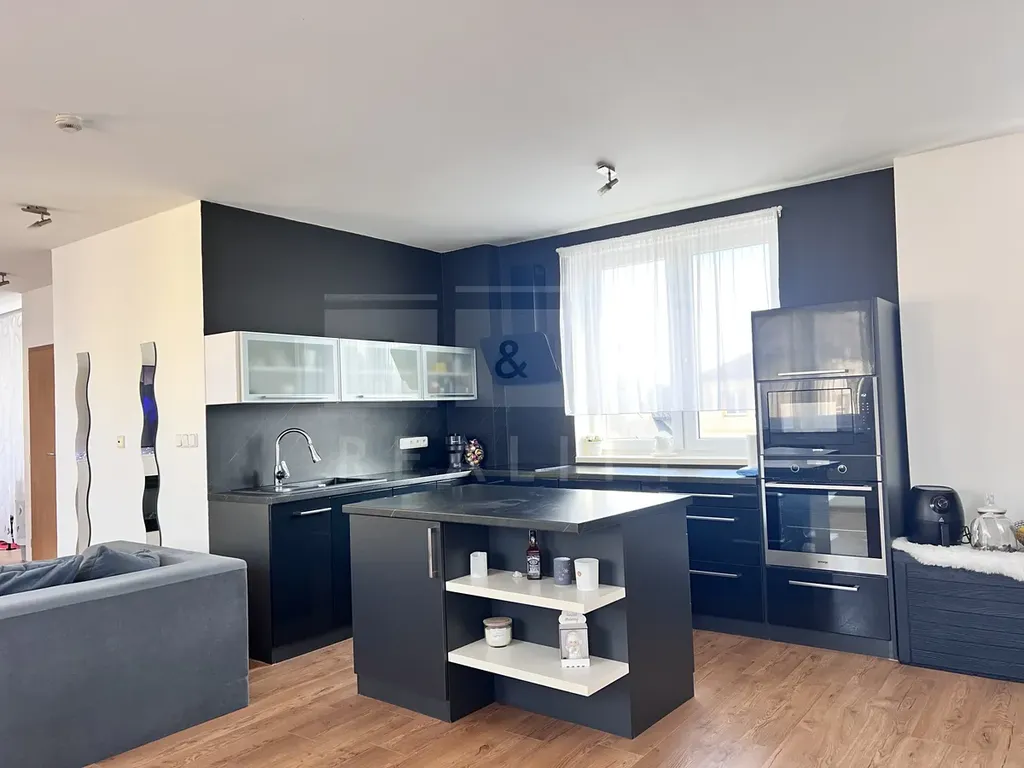 Byt se nachází ve 2. nadzemním podlaží a je částečně zařízený. Dispozice nabízí vstupní chodbu, prostorný a světlý obývací pokoj s moderní, stylovou kuchyňskou linkou a dostatkem místa pro jídelní stůl. Z obývací části je přímý vstup na balkon. Dále je zde samostatná ložnice a druhý pokoj se šatnou, který může sloužit jako dětský pokoj, pracovna či pokoj pro hosty.
