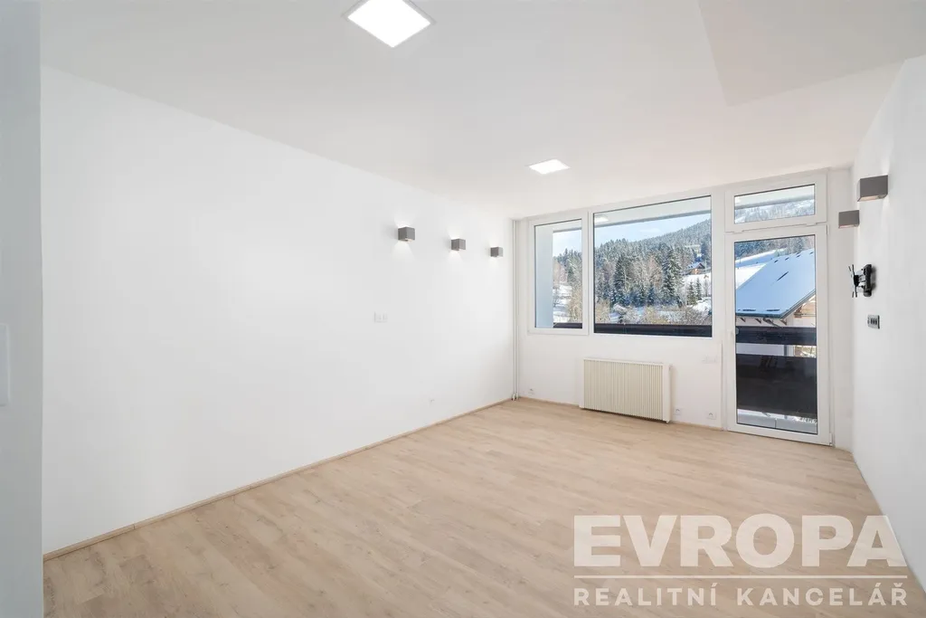 Nabízíme k prodeji byt v osobním vlastnictví o dispozici 2+kk s užitnou plochou 40,8 m2 (+3 m2 lodžie), který se nachází v 5. NP zatepleného panelového domu s výtahem (předposlední patro) v klidné části obce jménem Jiřetín pod Bukovou. Hned vedle domu je dětské hřiště, nedaleko tenisové kurty, muzeum dřevěných hraček s kavárnou a cca 1 km lyžařské středisko Tanvaldský Špičák, který je v provozu i v letním období jako Bikepark. V okolí naleznete i množství běžeckých tratí, turistických stezek a cyklotras pro letní aktivity.