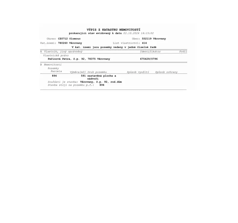 | Plocha pozemku | 894 m2 |