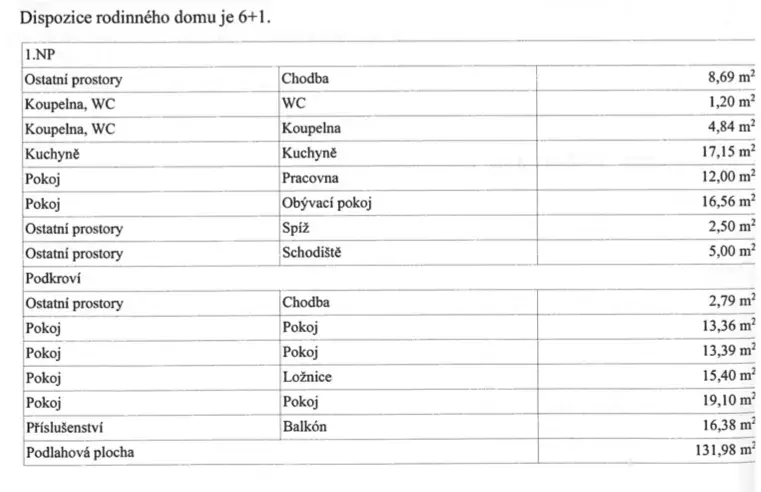 | Užitná plocha | 132 m2 |