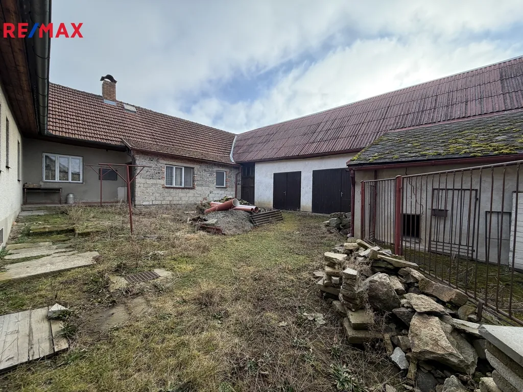 Jedná se o prodej rodinného domu s uzavřeným dvorem v okrajové části městyse Božejov 8km od Pelhřimova. Dům je dispozičně tvořen vstupním průjezdem 40m2, který slouží zároveň jako garáž a je z něho vstup do sklepa, kde se nachází automatický kotel Benekov, který zajištuje ústředně vytápění celého domu, dále je z průjezdu vstup do obytné části kde se nachází vstupní předsíň 6,15m2, spíž 2,20m2, sklad 5,92m2, WC 0,84m2, koupelna s vanou 5,11m2, kuchyně 6,52m2, jídelna 14,51m2, pokoj 20,70m2, pokoj 26,4m2, pokoj 23,94m2, spojovací chodba 1,70m2 a veranda 7,19m2, dále k obytné části navazuje hospodářská část tvořená stodolou, sklady a sklepem. Střešní kytinu obytné části tvoří převážně taška betonová Bramac, na hospodářských částech se nachází vlnitý eternit. Dům je napojen na obecní vodovod i kanalizaci, ohřev TUV zajištuje bojler. Okna domu jsou špaletová částečně plastová. Pro více informací volejte makléře nabídky.