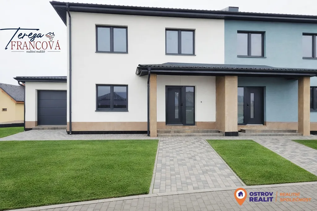 Exkluzivně nabízím k prodeji moderní rodinný dům o dispozici 4+kk v klidné obci Lipová. Dům je součástí dvojdomu, přičemž každá jednotka je stavebně i funkčně řešena jako samostatný dům s prakticky rozdělenou zahradou, vlastním vstupem, garáží a jasně vymezeným soukromím. Jedná se o dvoupodlažní novostavbu s užitnou plochou 153,48 m² (89,46 m² v 1. NP a 64,02 m² ve 2. NP) nacházející se na pozemku o výměře 475 m².