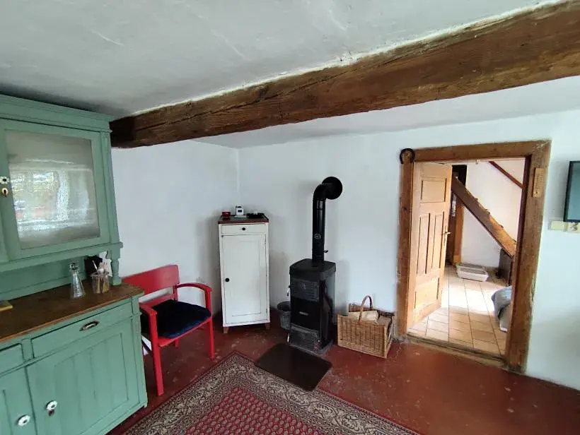 Prodej hrázděného domu v obci Želízy, postaveného koncem 19.století ve stylu lidové architektury Kokořínska, patrová hrázděná stavba na pozemku 220 m2 sestává z obytné části a stodoly. V přízemí domu z předsíně vejdeme do kuchyně a obytné sednice, koupelny se sprchovým koutem a WC. Po dřevěném mlynářském schodišti vystoupáme do patra se dvěma obytnými pokoji. Z podesty vejdeme na pavlač. V domě jsou zachované původní podlahy, okna, dveře se zárubněmi. Je zavedena elektřina 220/380V, veřejná voda, vlastní studna, žumpa, vytápění lokální kamny na tuhá paliva a infrapanely. Za domem zahrádka 128 m2 přístupná ze síně. Součástí prodeje je i mobiliář. Želízy jsou vyhledávanou rekreační lokalitou Kokořínska -Čertovy hlavy od sochaře Levého, koupaliště, krásná příroda CHKO Kokořínsko. Mělník 10 km.