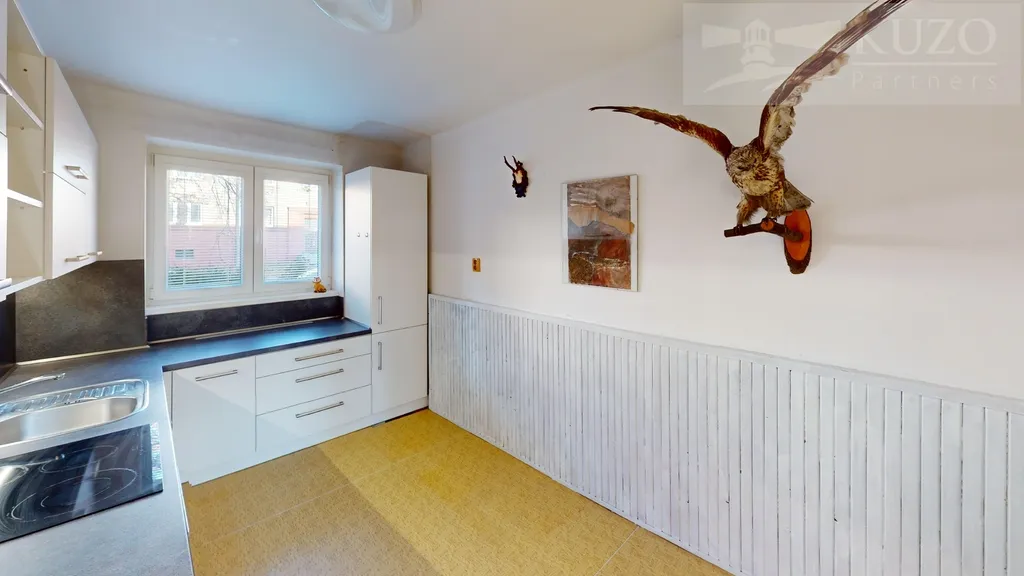 Koupelna a kuchyně prošly rekonstrukcí před cca 8 lety – byt je tedy ihned obyvatelný bez nutnosti okamžitých velkých investic. Původní elektroinstalace je plně funkční, ale nabízí prostor pro modernizaci při plánované přestavbě.