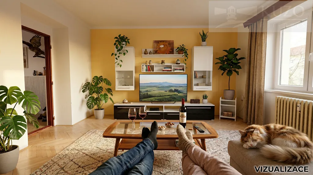 Chytrá dispozice a potenciál: Současných 58 m² (58m2 dle zápisu v Katastru, dle digitální technologie MATTERPORT dokonce 64,9m2) v dispozici 2+1 nabízí unikátní možnost jednoduché přestavby na moderní 3+kk. Přesunutím kuchyně do prostorné chodby získáte plnohodnotnou ložnici navíc – ideální řešení pro mladou rodinu.