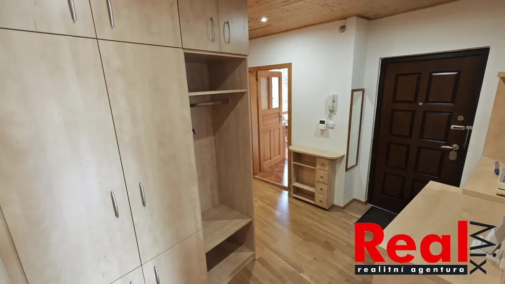 Byt je zařízen kuchyňskou linkou s el. multifunkční troubou a sklokeramickou varnou deskou, myčkou, ledničku s mrazákem a mikrovlnnou troubou, dále je v bytě pračka a sušička, ložnice je vybavená velmi prostornou šatní skříní a vyklápěcím vestavěným dvoulůžkem, v obývacím pokoji je k dispozici nábytek dle fotodokumentace, v předsíni je vestavěná prostorná skříň a dále jsou k dispozici úložné prostory v předsíňové části pod stropem.