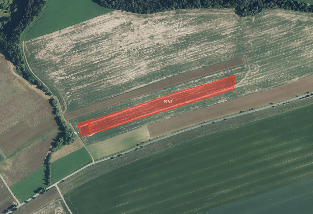 Pozemky jsou zapsány na listu vlastnictví č. 1158 pod parcelními čísly 957/2 a 959/2.