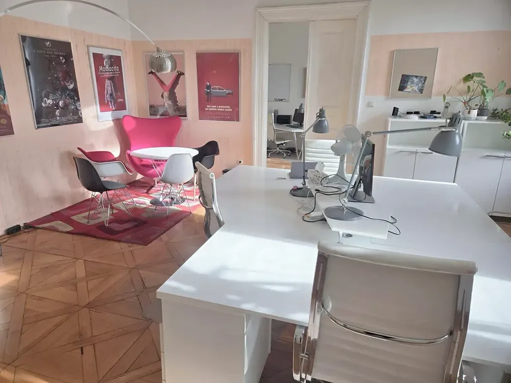 Kancelářský celek se nachází ve zvýšeném přízemí čtyřpodlažního cihlového domu. Prostory jsou ve velmi dobrém stavu a nabízejí vysoký standard pracovního prostředí. Kanceláře jsou světlé a vzdušné, orientované na jih s výhledem do parku, a díky vysokým stropům poskytují příjemnou pracovní atmosféru.