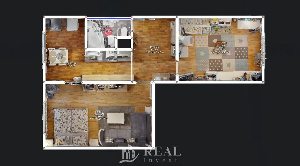 Uvnitř proběhla kompletní rekonstrukce bytového jádra a kuchyně. Obytné místnosti jsou v původním, ale velmi zachovalém stavu ideální příležitost si je upravit podle vlastního vkusu, bez nutnosti okamžitých velkých investic.