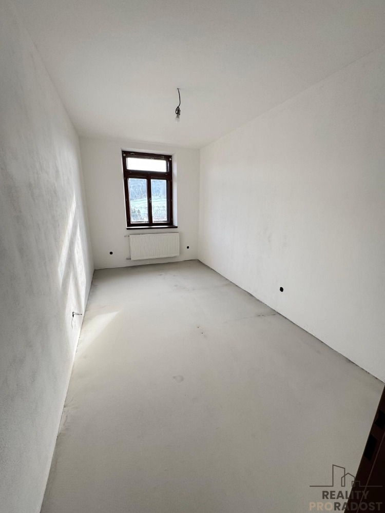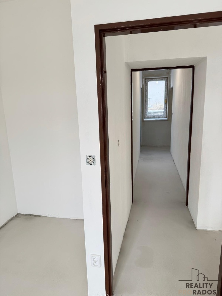 Nabízíme vám výhradně budoucí prodej nově rekonstruovaného bytu o dispozici 3+kk v rodinném domě o třech bytových jednotkách s podílem na domě a pozemku v obci Nová Ves u Litovle. Byt s podlahovou plochou bytu 80 m2 se nachází v přízemí domu a patří k němu i zahrádka vč. kůlny o velikosti 43 m2. Vrchní patro domu je odděleno a je zde vlastní vstup do domu a na zahradu. Konstrukce v 1. patře jsou tvárnice, přízemí domu je smíšené zdivo - pálená cihla a suchá vepřovice. Dům je zateplen polystyrenem. Vytápění bytu novým elektrickým kotlem, na kterém lze ovládat vytápění od 2 kW - 14 kW dle potřeby. Ohřev vody - nový elektrický bojler. V bytě je nově vybudováno - elektřina, topení, voda, vnitřní nové omítky, stupačky, betonová podlaha vylitá nivelační stěrkou, plastová okna, radiátory. Co se týká dalšího dovybavení bytu, tak současný majitel nabízí možnost dobudování pro nového vlastníka a to za velmi příznivou cenu dle výběru materiálu a podobně. Jedná se například o podlahy, kuchyň, koupelnu (počítá se tam s vanou, WC, umyvadlem, sprchovým koutem). Vstupní dveře jsou nové bezpečnostní. Přední strana domu s orientací na Jih jsou kvalitní dřevěná okna dvojskla. Zadní strana domu s orientací na sever jsou plastová okna trojskla. Každý byt v domě má samostatné měřiče. Vrchní patro v domě již obývá velmi příjemná rodina. V současné době se řeší rekonstrukce posledního sousedního bytu v domě, která bude rovněž nabídnuta posléze ke koupi. Součástí koupě bude vlastní parkovací místo podélné s výměrou 2,5 m x 6m, které se ještě bude stavět. Jelikož si projekt vyžádal drobné úpravy, řeší se kolaudace, která bude dokončena v brzké době. Půdorys bytu je přiložen ve fotografiích, je ohraničen zeleně. Jedná se o klidnou lokalitu s dobrou dostupností do okolních měst a vzdáleností do Litovle 6 km, Olomouce 20 km, Mohelnice 17 km. V případě zájmu o další informace ohledně ceny, prodeje a výhodného financování kontaktujte realitního zprostředkovatele. PENB tř. B - velmi úsporná.