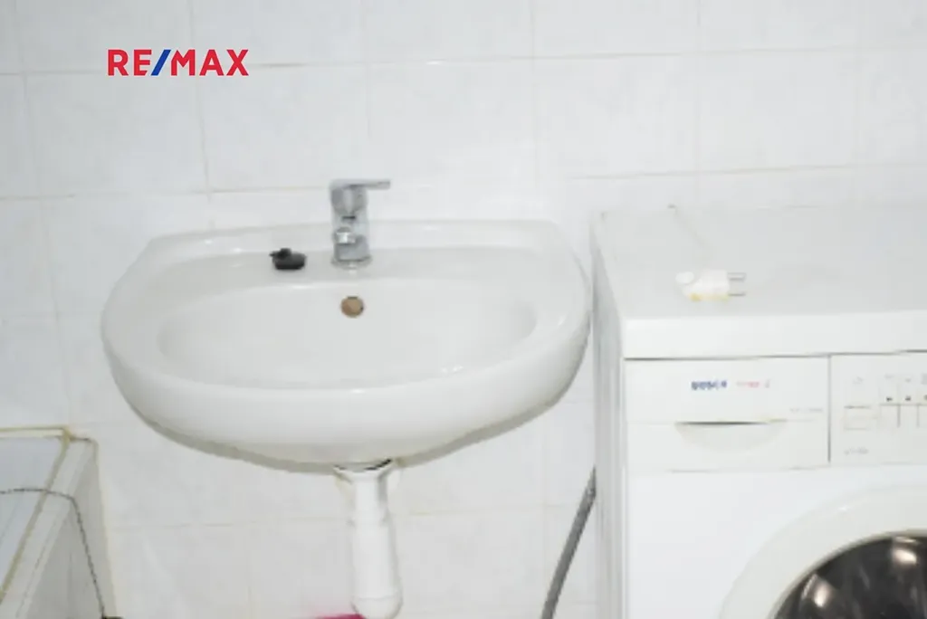 Součástí bytu je koupelna s vanou, umyvadlem a pračkou, samostatné WC a vstupní chodba. K bytuje zděná sklepní koje 2,61 m2, k dispozici je také společná kolárna a kočárkárna .