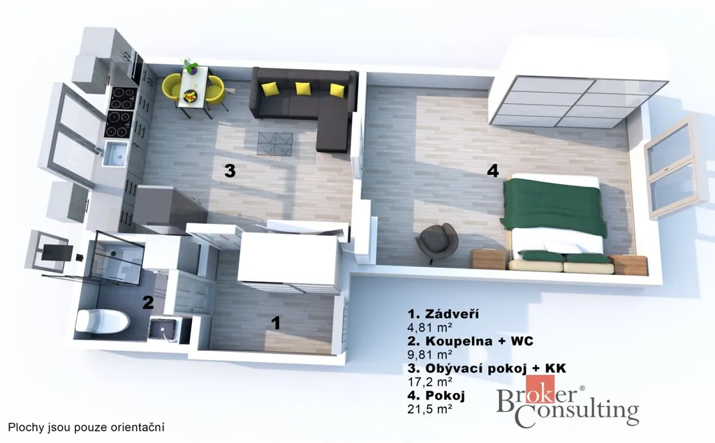 Nabízíme k prodeji světlý a prakticky řešený byt v širším centru Hradce Králové. Dispozice zahrnuje vstupní chodbu, koupelnu s WC, obývací pokoj s kuchyňským koutem a samostatný pokoj. Byt působí vzdušně a nabízí dostatek úložného prostoru.