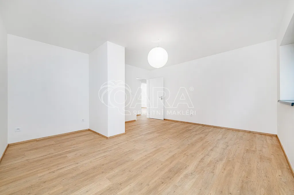 Útulná jednotka s vlastním balkonem (27 m²). Obývací pokoj s kuchyní (23,6 m²), dvě ložnice se střešními okny a koupelna.