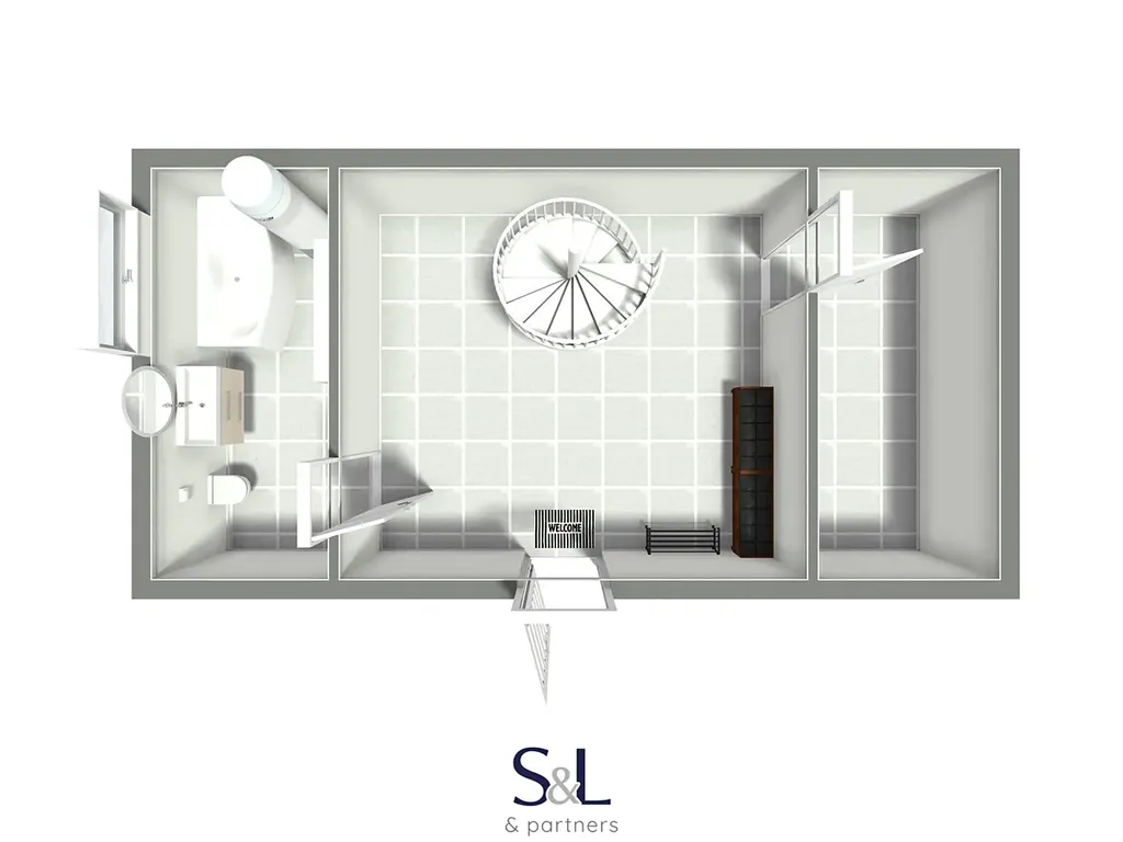 Přízemí: vstupní hala, šatna s úložným prostorem, koupelna