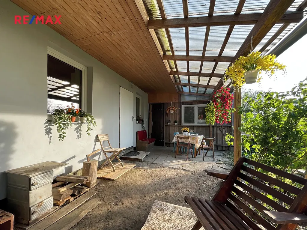 Na pozemku se dále nachází dlouhá dřevěná maringotka, kterou lze po renovaci využít pro včelařské, zahradní nebo obytné účely, a také dvě vlečky na kolech a několik hromad řeziva (fošny, latě a palivové dřevo).