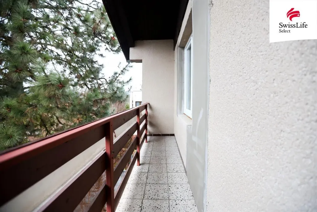 Z obývacího pokoje je vstup na velkou terasu s krásným výhledem na Dobrou Vodu, která nabízí příjemné posezení, dostatek soukromí a přímý vstup na zahradu.