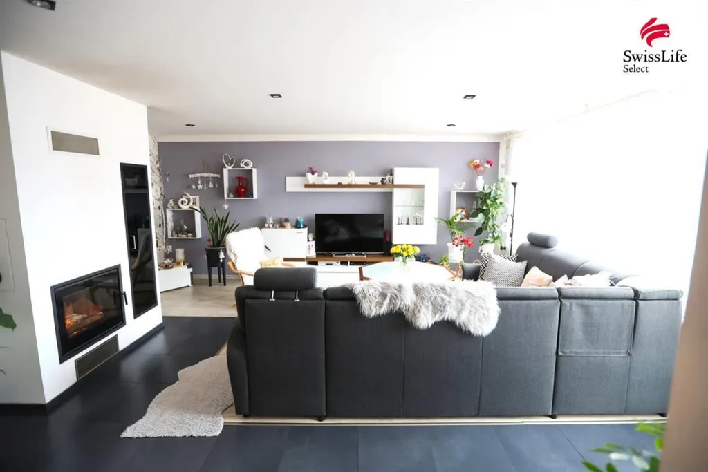 Mezonetový byt (95 m) světlý a prostorný interiér s dominantním krbem, který dokáže vytopit téměř celý byt.