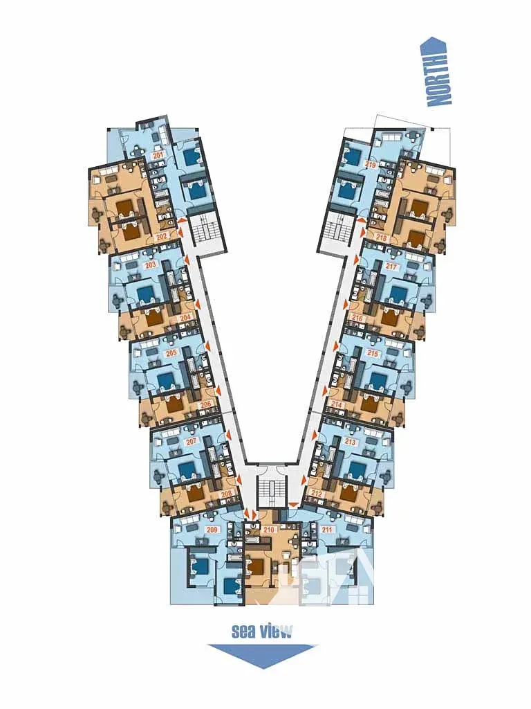 Konkrétní nabídka představuje 1+kk o ploše 40 m² v 1. podlaží s krásným výhledem na moře. Prodává se ve fázi hrubé stavby, tedy s omítkami, rozvody, elektroinstalací, vstupními dveřmi a plastovými okny Winkhaus. Interiér si můžete dokončit podle vlastního stylu, s možností realizace na klíč. Fotografie interiérů slouží jako inspirace budoucí podoby.