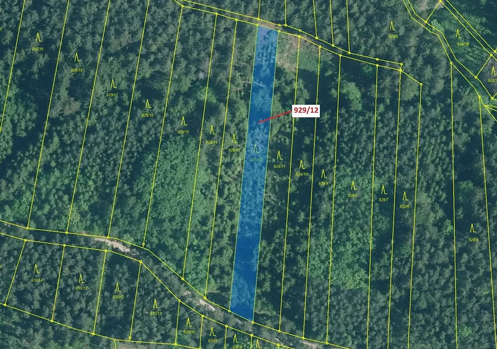 Lesní pozemek o výměře 1517 m2, parcelní číslo 929/12, podíl 1/1, katastrální území Hosty, obec Hosty, obec s rozšířenou působností Týn nad Vltavou, okres České Budějovice, Jihočeský kraj.
