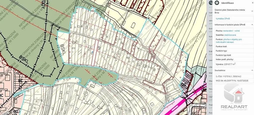Nabízíme na prodej zahradu o výměře 903 m2 v obci Brno - Obřany, příjezd od viaduktu z ulice Hlaváčova. Dle aktuálně platného územního plánu je možné na pozemku postavit zahradní boudu o zastavěné ploše do 40 m2, celý podsklepený + obytné podkroví. Zbylou plochu (celkem 20% z plochy pozemku) je možné využít na zpevněnou plochu pro parkování, terasu, pergolu, bazén, kůlnu (nesmí být spojená s hlavním objektem). WC chemické. Zeleň musí zůstat na 80% plochy pozemku. Pozemek obdélníkového tvaru má šíři 9,4 m, délku 91 m. Pozemek je ze strany příjezdu z jižní strany rovinatý až mírně svažitý, dále se více svažuje. Příjezd je možný i z druhé strany, kde je pozemek částečně rovinatý. Příjezdová cesta je v posledních cca 300 m nezpevněná, je rovinatá až mírně svažitá. Běžným osobním i nákladním automobilem se dá dojet až na pozemek. Pozemek byl z 85 % vyčištěný frézou od náletových dřevin, nyní je již částečně zarostlý. Elektrický pilíř je na hranici pozemku, je uzavřena smlouva o připojení k distribuční síti a je zaplacený rezervovaný příkon na spotřebu do 5kW, 3x6A. Vodu je možné řešit vrtem, hladina spodní vody okolo 10 m. Prohlídky po domluvě kdykoli, pozemek je pronajatý s roční smlouvou, vždy od září, výše nájemného osobně.