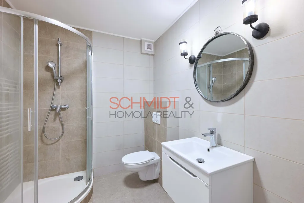 Součástí bytu je kuchyňská linka, koupelna se sprchovým koutem a sklepní kóje nacházející se v přízemí. Vytápění i ohřev vody zajišťuje společná kotelna, k případnému chlazení je zde také klimatizace. Bytový dům je v energetické třídě „A“, díky čemuž jsou náklady na vytápění zcela minimální. Užitná plocha bytu je 32,3 m², nad rámec této výměry je dále balkon a již zmíněná sklepní koje.