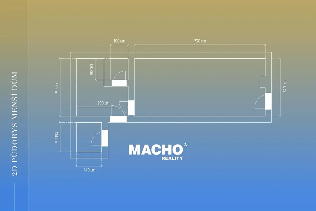 Menší dům je zateplený a má užitnou plochu 36,5 m2. Dispozičně je řešený jako 1+kk, a tvoří jej předsíň, ze které je přístupná toaleta a obývací pokoj s kuchyňským koutem. Součástí je také praktická komora s přístupem z venku. Topení je podlahové a kamny na dřevo.