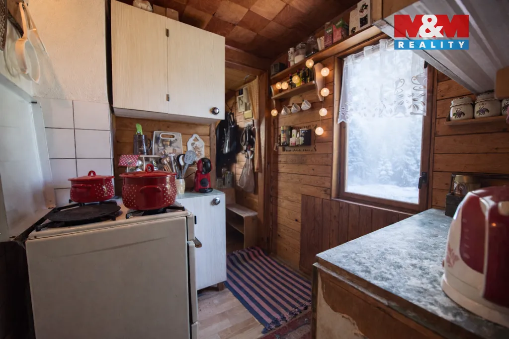Nabízíme k prodeji dřevěnou chatu v malebné a klidné části obce Přívrat. Ideální místo pro rekreaci a útěk od městského shonu. Chata má dvě nadzemní podlaží a je podsklepená. Nabízí prostornou verandu s venkovní kuchyní, kde si můžete vychutnat ranní kávu s výhledem do okolní přírody. Dále obývací pokoj, menší kuchyň, toaletu a spíž, v patře 2 pokoje a ještě menší půdní prostor. Koupelna je nová, přístupná zvenčí. Voda je do chaty přivedena z pramene. Chatu obklopuje udržovaná zahrada o velikosti 704 m2, na které je umístěna pergola a zahradní domek s dílnou, dále bazén s ohřevem, který je také součástí prodeje. Přístup je po lesní cestě a dále skrz zahrady zajištěn nájmem za 120 Kč/měs. Chata umístěna na pozemku o rozloze 704 m², který poskytuje dostatek prostoru pro zahradničení nebo relaxaci. Stav nemovitosti je velmi dobrý, což umožňuje okamžité využití. Okolí stvořené k výletům. V obci je skiareál a vyhledávaný PINGUin park, tenisový kurt, dětské hřiště, obchod a další vyžití.