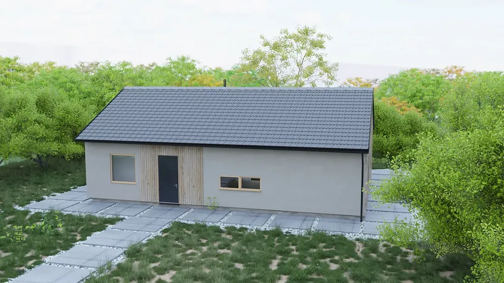 Cena za stavební pozemek s rodinným domem (dřevostavbou) od partnerského výrobce. Zahrnuje dům vybavený k bydlení vč. vnitřního vybavení a topení.