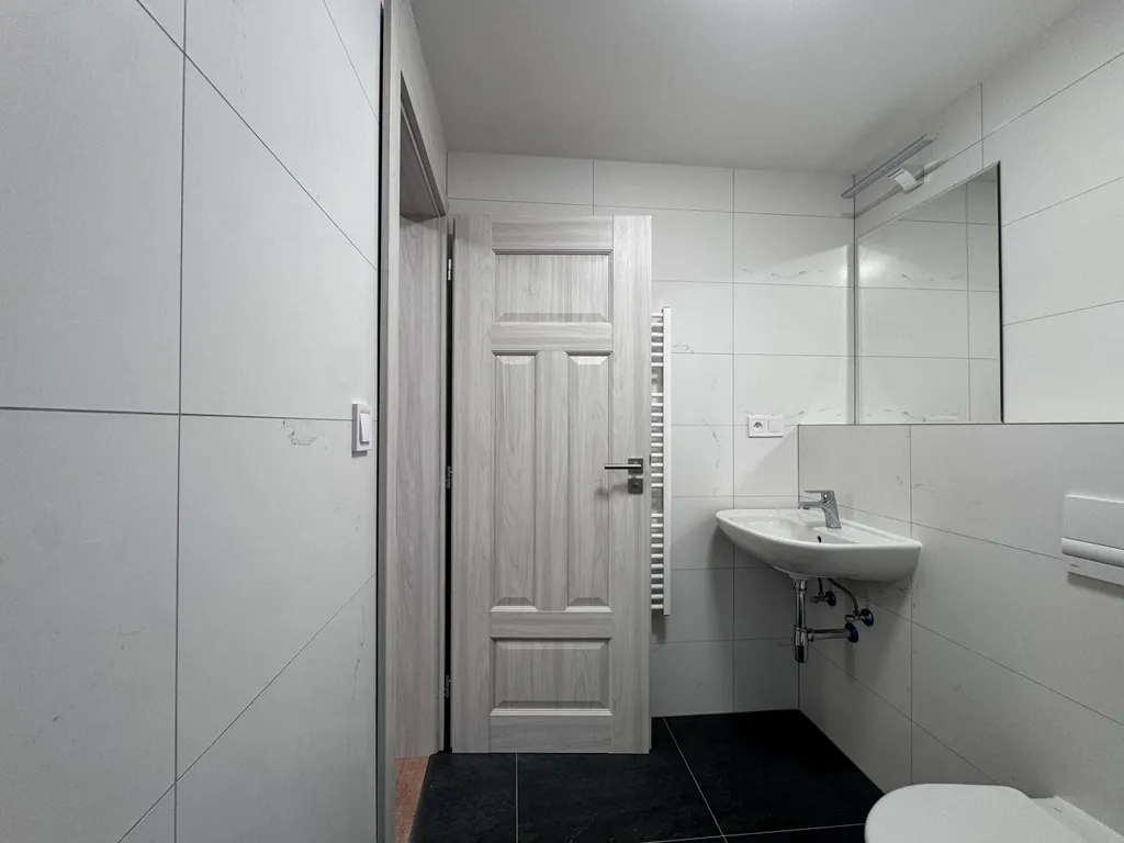 Spodní část bytu má výměru 39 m a disponuje obývacím pokojem s kuchyňským koutem a potřebným zázemím. Horní patro o velikosti cca 20 m tvoří druhou obytnou úroveň, kterou lze využít jako ložnici, pracovnu nebo další pokoj. Mezonetové řešení zajišťuje příjemné oddělení denní a klidové části a dodává bytu vzdušný charakter.