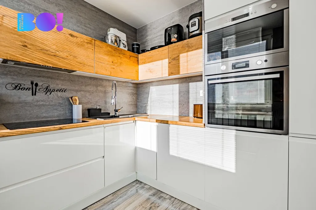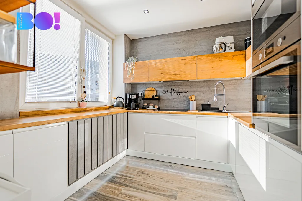 BO! Reality Vám nabízí byt, které splní oba z výše uvedených cílů. Byt o dispozici 3+1 v osobním vlastnictví po kompletní rekonstrukci, která proběhla před 8 lety. Byt má moderně řešenou kuchyň s koupelnou a použitý styl, který bude v módě ještě dlouhá léta. Kuchyň má vestavěné spotřebiče, jako jsou lednice s mrazákem, myčka, pračka, trouba, mikrovlnka, digestoř a indukční deska. Takže kuchyň obsahuje všechno, co po nastěhování potřebujete k okamžitému využívání.