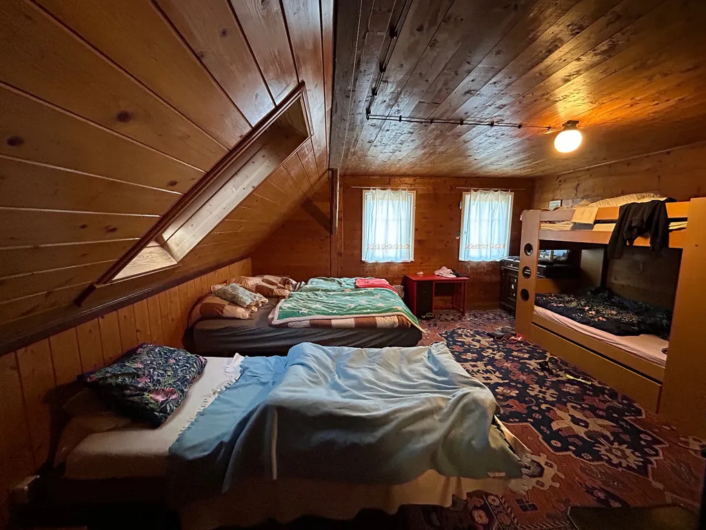 V přízemí objektu se kromě hlavní světnice s kuchyní dále nachází samostatná koupelna, WC, velká ložnice, prostorná předsíň, hala, sklad/ kolárna-lyžárna a zastřešená terasa. V patře pak další dvě samostatné ložnice a skladové prostory. Další úložné prostory na půdě. Vytápění zajištěno pomocí telefonicky ovládaných přímotopů a kamen na dřevo. Objekt je napojen na obecní vodovod a kanalizaci.