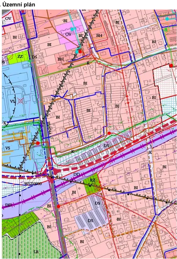 Dle územního plánu leží pozemky v zastavěném území a jsou součástí stabilizované plochy BI. Přístup k hranici pozemku je zajištěn z veřejné komunikace se zpevněným asfaltovým povrchem. Napojení na IS (elektřina, vodovod, kanalizace, plynovod).