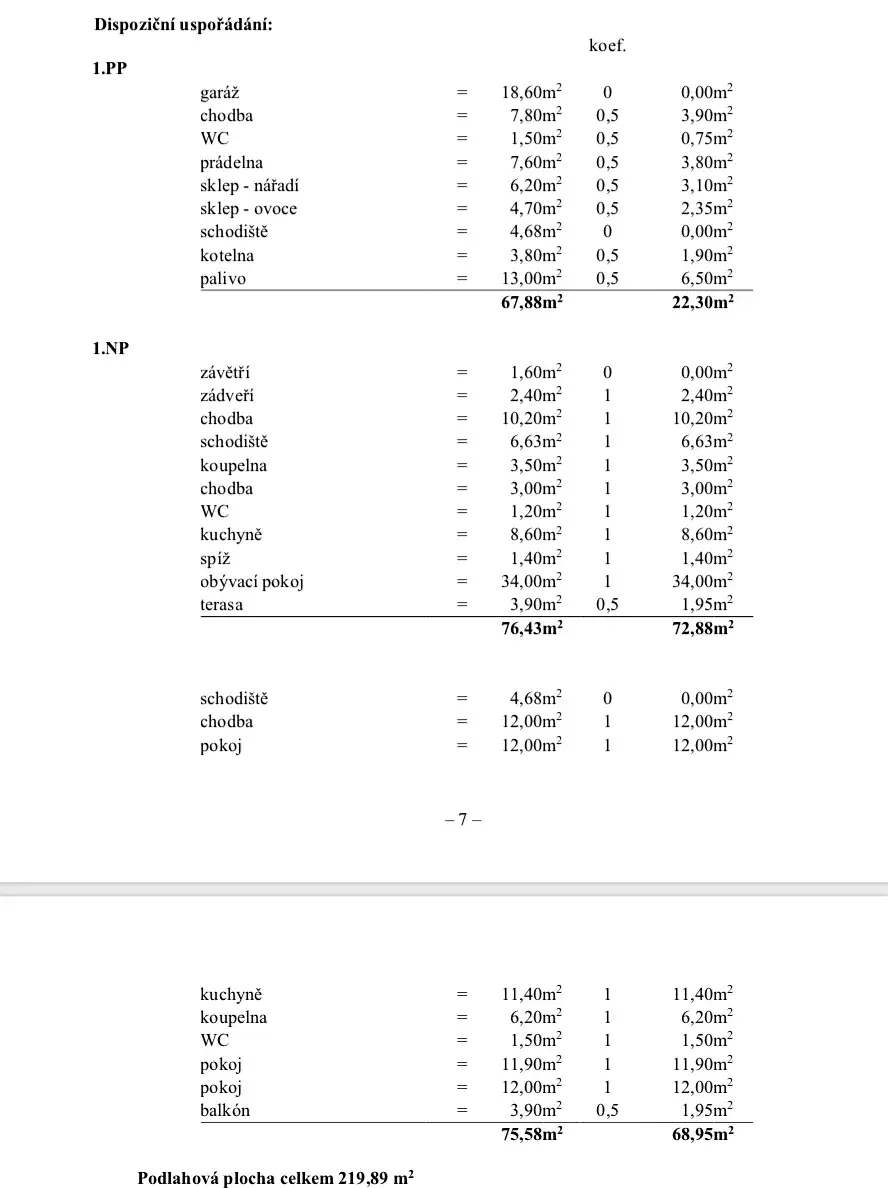 * 1.PP: sklep, garáž, prádelna, kotelna, vstup na zahradu