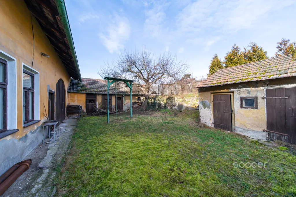 Velkou přidanou hodnotou je půda o velikosti cca 85 m2, kterou lze využít k vybudování dalšího obytného patra. Součástí pozemku je také prostorná stodola s potenciálem pro dílnu, sklad, ateliér nebo vybudování další bytové jednotky. Pod domem se nachází původní sklípek se stálou teplotou, ideální pro skladování výpěstků nebo vína.