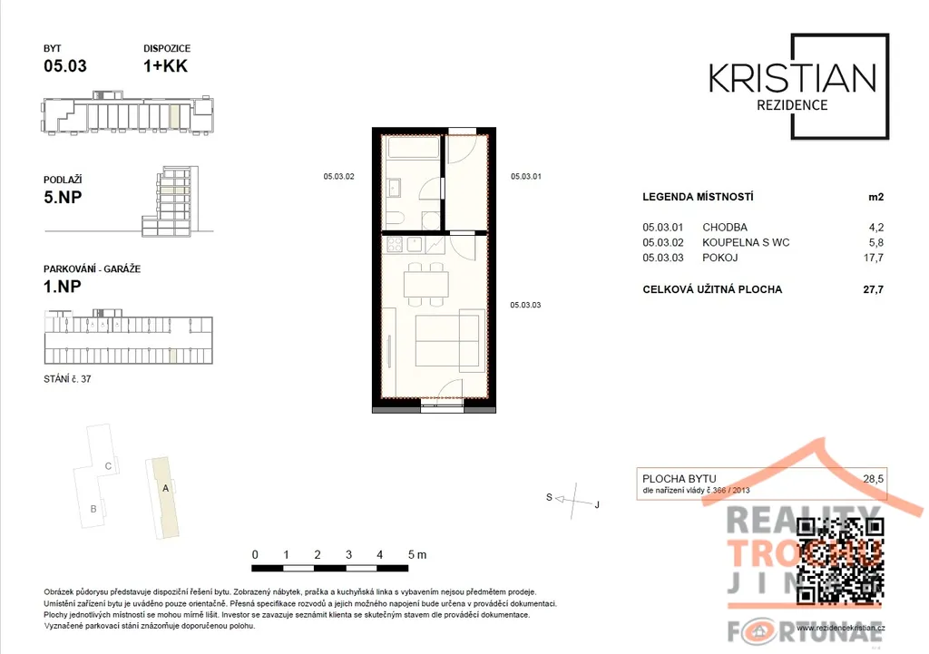 Nabízíme k pronájmu nový byt v Rezidenci Kristian o dispozici 1+kk, ve vyhledávané lokalitě v Hradci Králové – Moravské Předměstí. Byt se nachází v 5. patře zděného domu s výtahem. Celková plocha bytu činí 28 m2.