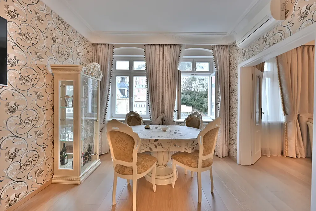 Nabízíme Vám k prodeji světlý a velmi hezký byt, o celkové ploše 55 m2, který se nachází v 4 patře krásného historického domu na Vřídelní ulici v centru Karlových Varů.