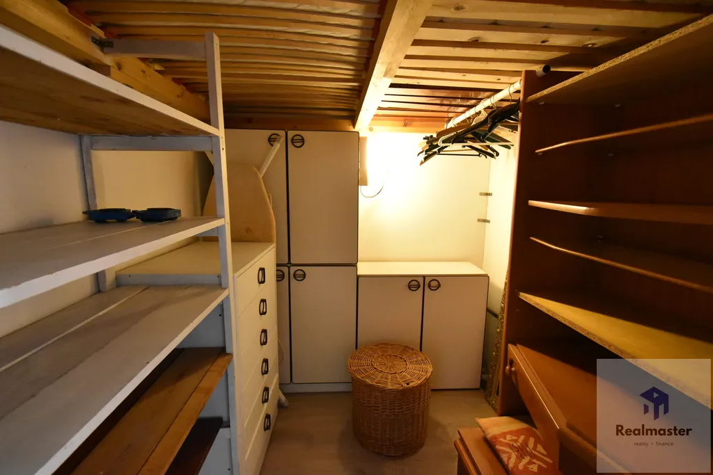 V pokoji pak zvýšená postel s úložným prostorem vespod.