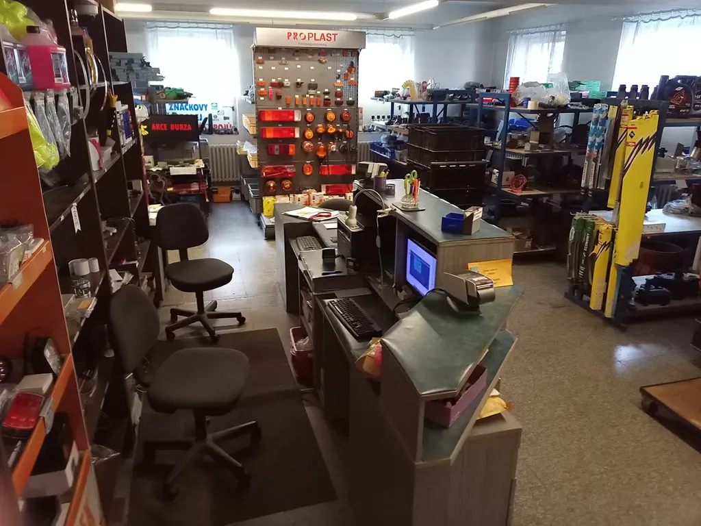 Prodej se tak týká již 33 let zavedenou firmu zaměřující se na opravu a prodej náhradních dílů převážně pro nákladní dopravu s využitelnou plochou k podnikání : prodejna s kanceláří a soc. zařízení cca. 280 m2, dílny s garáží a chodby cca. 330 m2, podstřeší nad dílnou vhodné pro vestavbu cca. 180 m2.