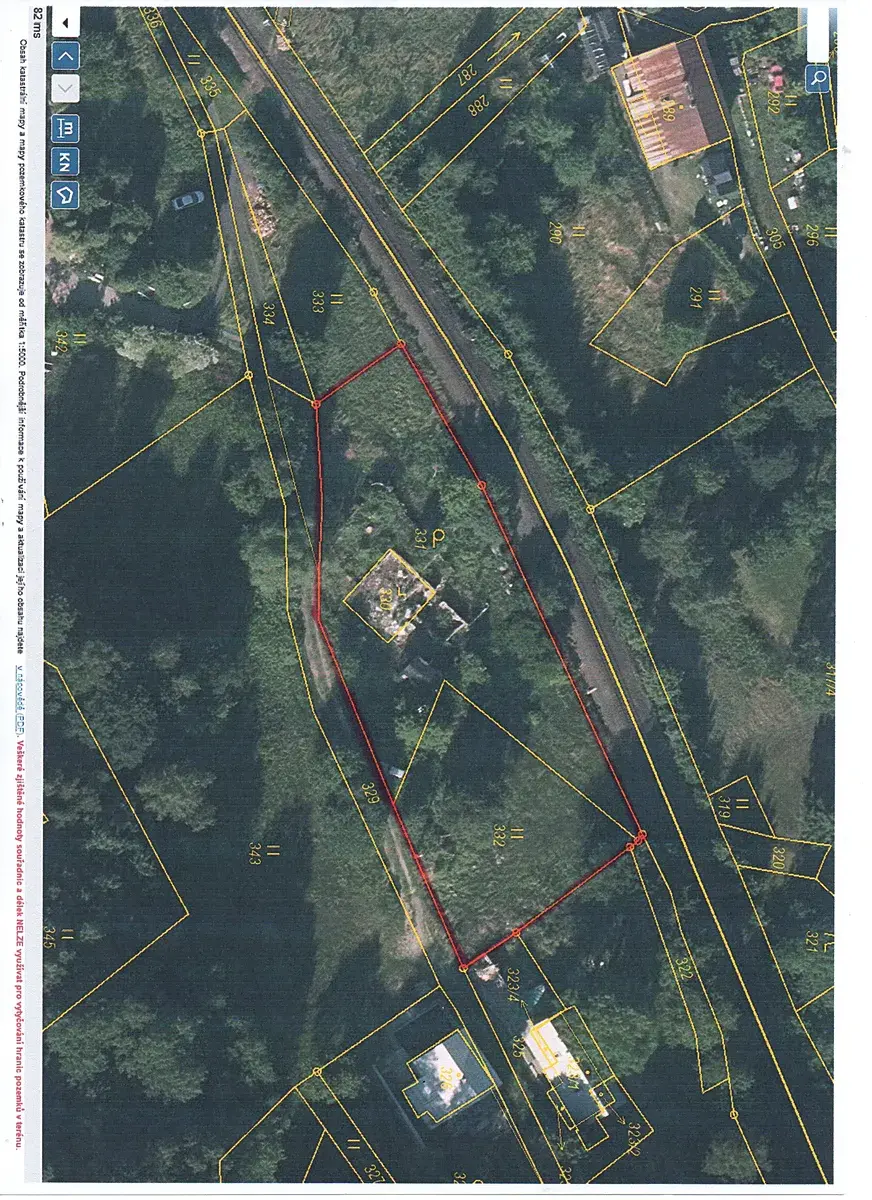 Pozemek má cca. obdélníkový půdorys o výměře cca. 30 x 70 m s osazením do severozápadního svahu mezi železniční trať (zubačka Tanvald-Harrachov) a obecní komunikaci a to mezi zastávkami Dolní Polubný a Desná-Pustinská. Na pozemku byl postavený dřevěný rodinný dům osazený na kamenné podezdívce s podsklepením, který před několika lety vyhořel a tak jsou zde pouze zbylé části kamenné podezdívky a sklepa s navazující původní zděnou vedlejší stavbou v dožívajícím stavu a několika stromy. Celá plocha pozemku o výměře 2.111 m2 je platným územním plánem určená k zastavění jako BI – Bydlení v rodinných domech-městské a příměstské s možností stavby i rekreačních objektů a staveb občanského vybavení ve III. zóně CHKO.