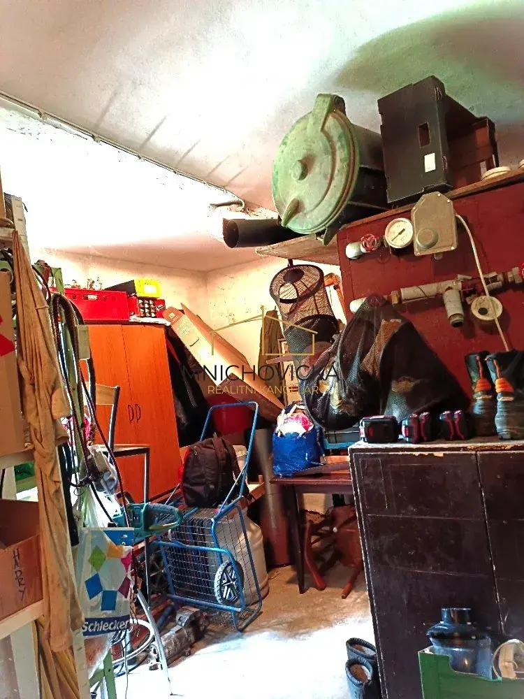 1. podlaží – suterén: jedná se o technické místnosti (sklepy, toaleta, kancelář (celkem 58m2), toaleta je přístupná z průjezdu domem na pozemek za domem.