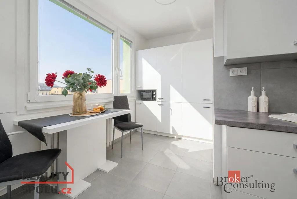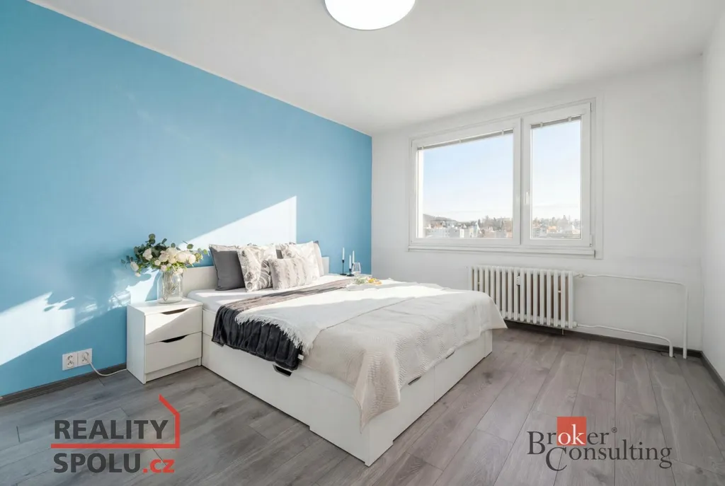Byt nabízí praktické dispoziční řešení s neprůchozími pokoji a příjemnou světlost díky umístění v posledním patře. Dispozici tvoří prostorná vstupní předsíň, samostatná kuchyně s moderní kuchyňskou linkou, prostorný obývací pokoj, samostatná ložnice, koupelna se sprchovým koutem a toaletou. Umístění v 8. patře zajišťuje dostatek denního světla, otevřený výhled na město i okolí a zároveň klid bez hluku od sousedů nad vámi.