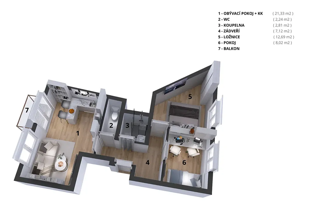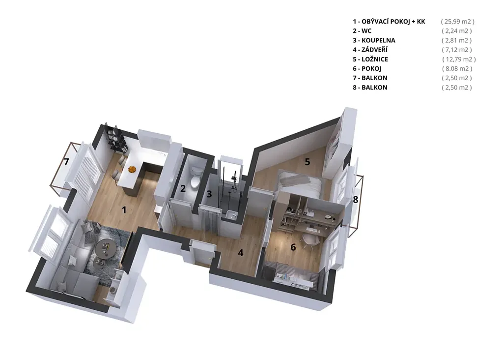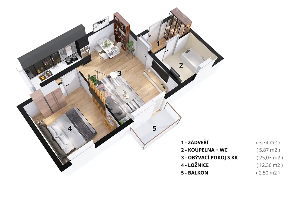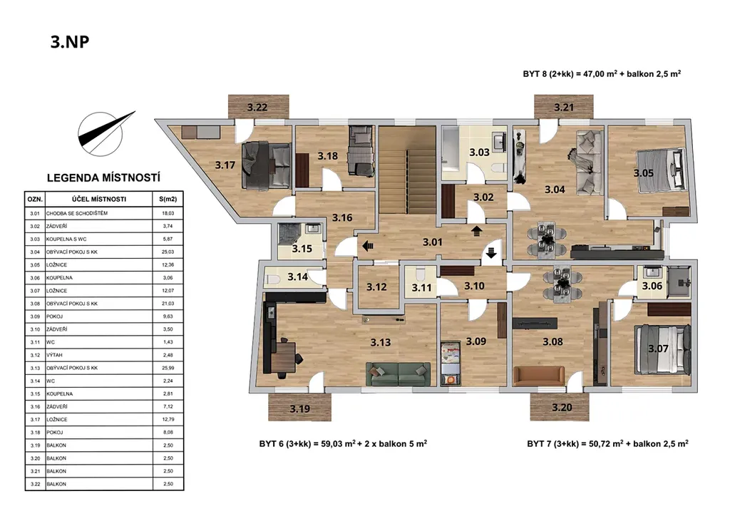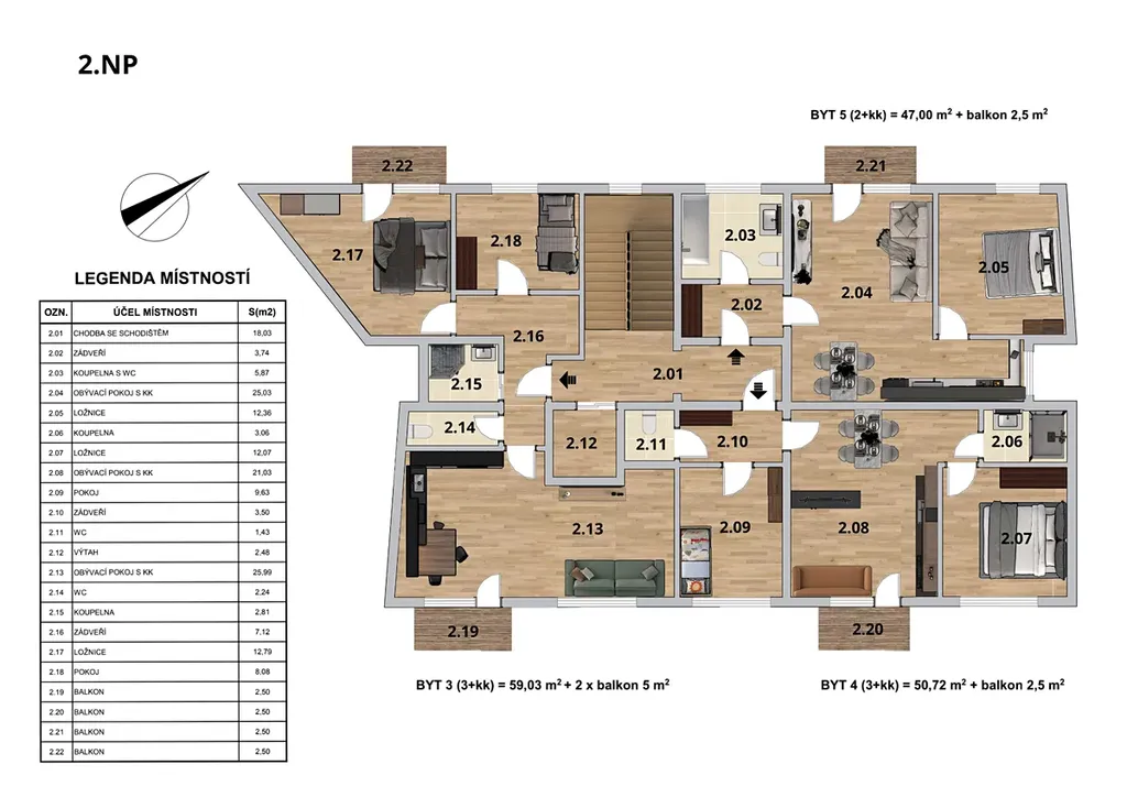 NP: bytové jednotky od 47,00 m² do 59,03 m² s balkonem