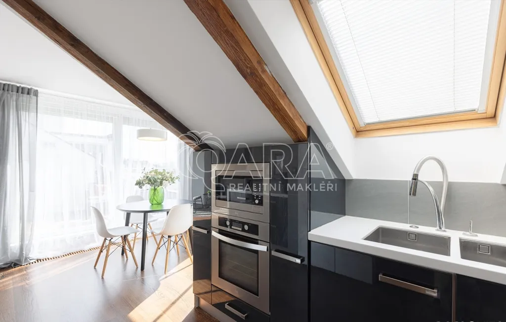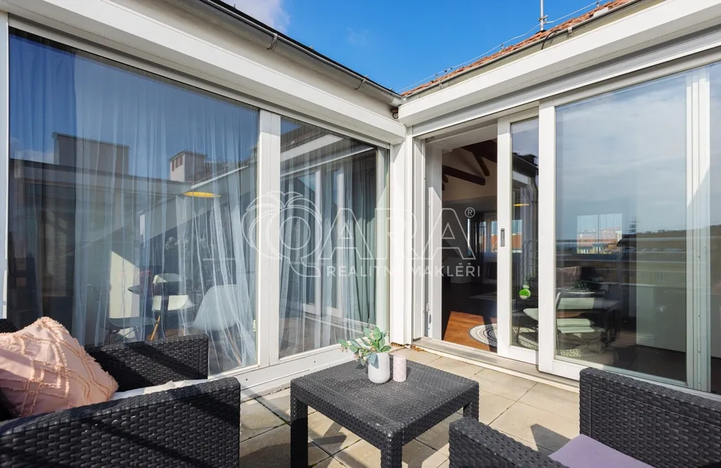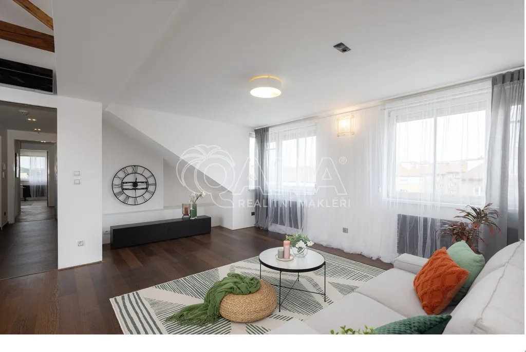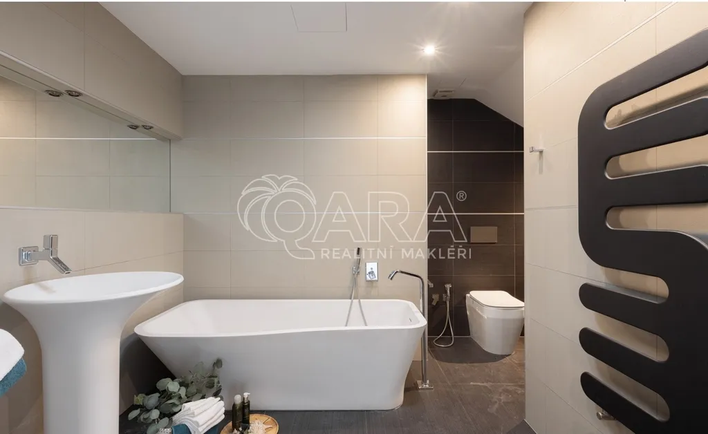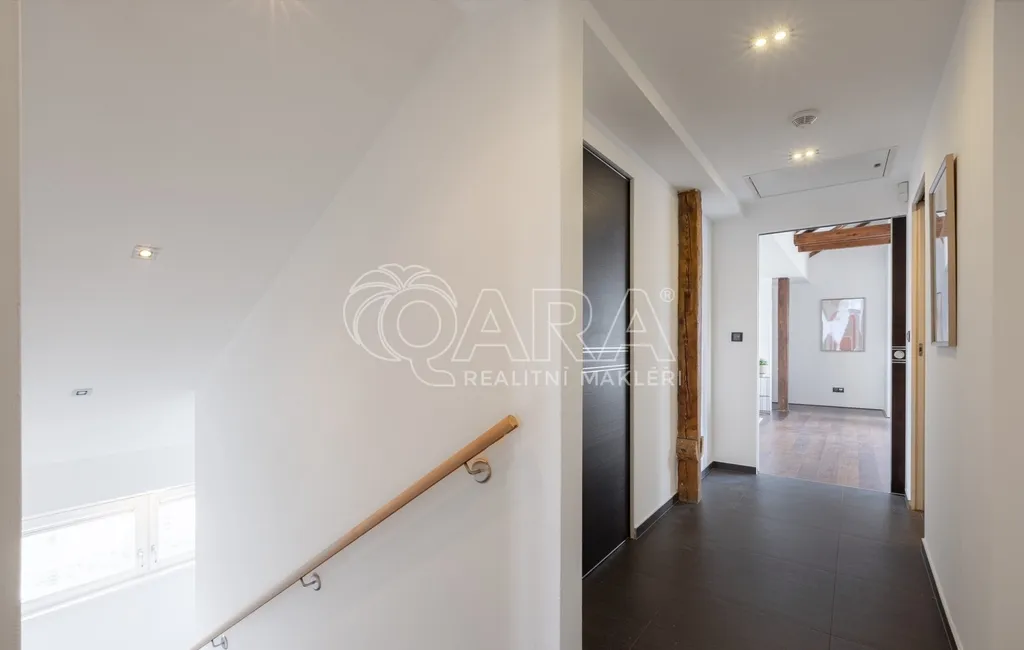 Zapomeňte na stereotypní podkrovní byty s nízkými stropy. Tohle je prostor, kde se můžete nadechnout. Na ploše 146 m² se rozkládá byt, který v sobě snoubí moderní design a praktičnost. Díky výtahu, který vás doveze až do vaší předsíně pomocí čipu, si užijete maximální komfort a soukromí. Pro hosty je k dispozici video telefon a schodiště, které můžete využít pro dodatečný úložný prostor.
