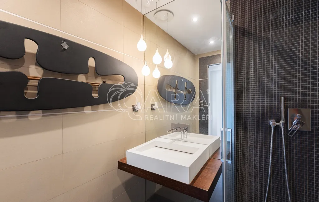 Dispozice 4+kk s velkou terasou je promyšleně rozdělena na dvě části – soukromou a společenskou. Váš soukromý prostor je tak naprosto oddělen od návštěv, které mohou využít vlastní koupelnu se sprchou a šatnu, které jsou hned u vstupu. V zadní části bytu na vás čeká hlavní koupelna s vanou a elektrickým podlahovým topením, kde je i prostor pro pračku. Pro váš absolutní klid je byt vybaven alarmem.