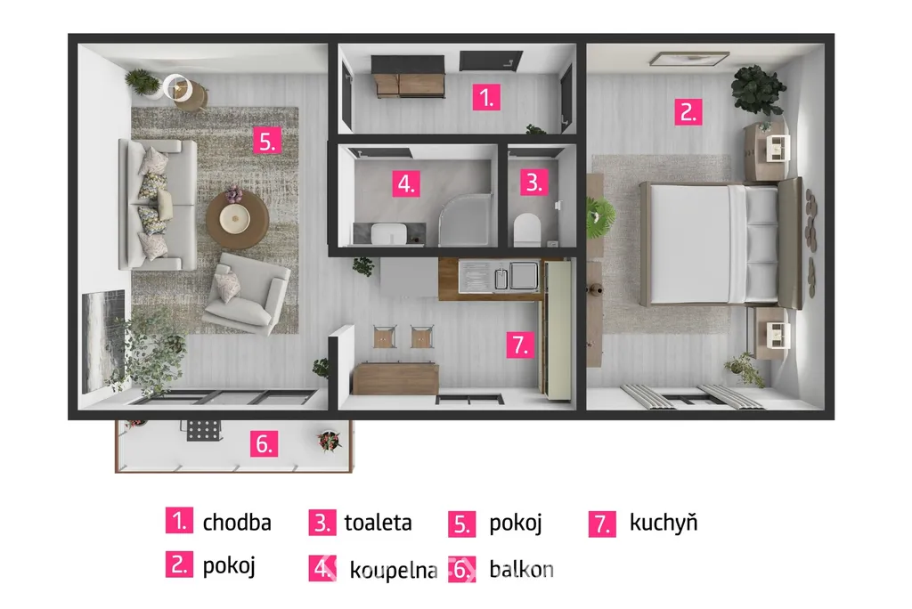 K dlouhodobému pronájmu nabízíme byt 2+kk o celkové výměře 55 m², který je ihned k dispozici.
