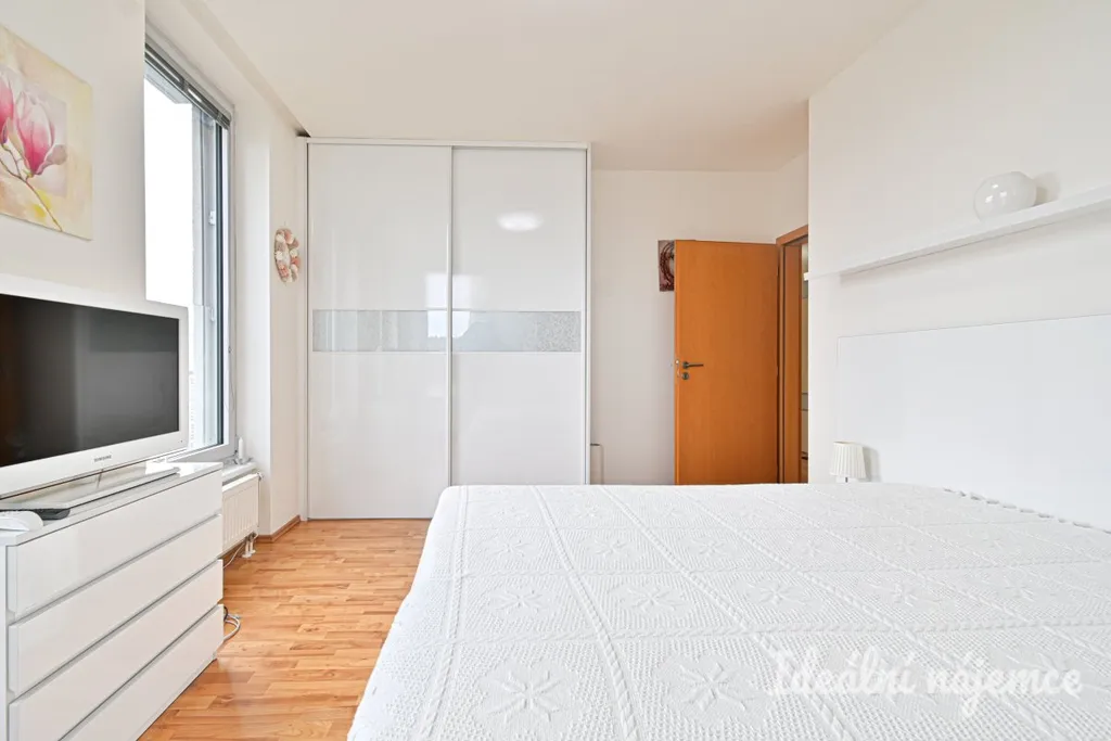 Byt disponuje dvěma samostatnými pokoji, které mohou sloužit jako ložnice, dětský pokoj nebo pracovna. Hlavní ložnice je vybavena vestavěnou skříní, další úložné prostory se nachází také v chodbě.