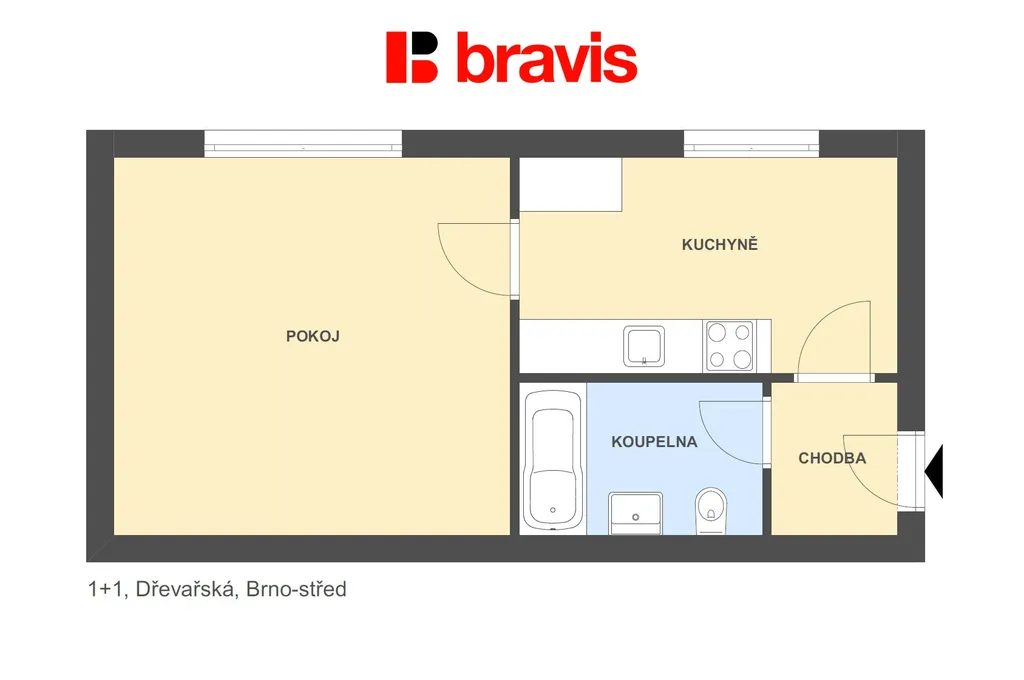 Pronájem bytu 1+1, Brno - Veveří, Dřevařská, 30 m2